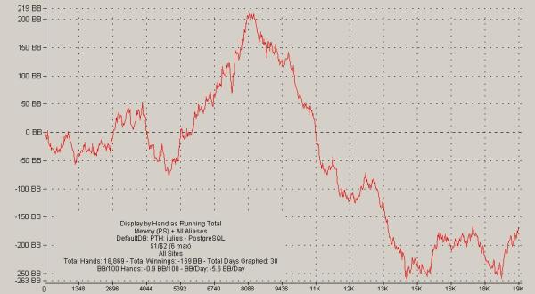 , das ich wochenlang immer wieder vor mir hergeschoben habe, ist endlich da. wurde auch echt mal zeit, weiß auch nicht wieso ich so wenig motivation hatte was zu posten. wahrscheinlich ist der grund aber, dass ich selbst mit meinen resultaten so absolut nicht zufrieden war, was vor allem mit meinem megadownswing zu tun hatte. mittlerweile hab ich mich mit SH 1/2 und FR 2/4 wieder auf eine BR von 1300$ hochgearbeitet und mein nächstes ziel ist es, winningplayer auf 1/2 zu werden.