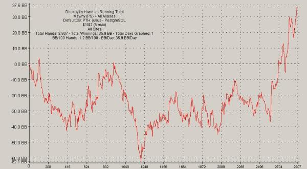 es geht voran auf 1/2, und das mit einer ordentlichen winrate von 2,25BB/100 auf die ersten 8k hände. 30k will ich aller vorraussicht nach insgesamt auf dem limit verbringen, bis dahin sollte ich dann auch die BR für 2/4 beisammen haben. 25k * 2BB/100 (war einfach mal optimistisch) = 500BB = 1200$. da ich bei einer BR von 930$ aufgestiegen bin, werde ich dann eine BR von mindenstens 1930$ besitzen und meinen ersten shot auf 2/4 wagen. aktuell beträgt sie übrigens 1270$.